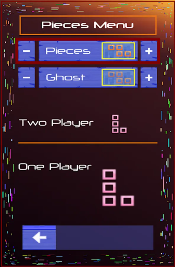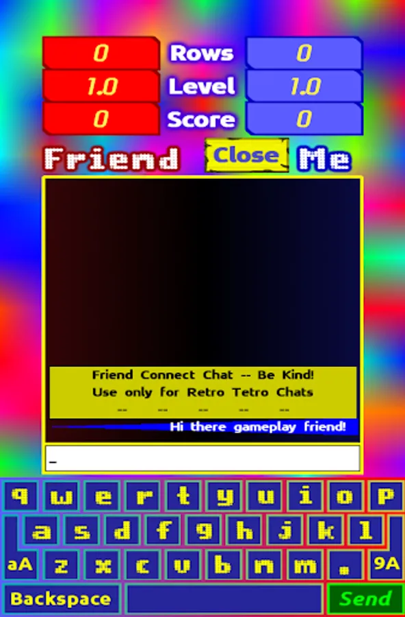 Two player mode has a real-time side-by-side display showing your friend's progress. Includes built-in chat and multi-game play mode. Send your friend a little gift each time you get a Tetro (four or more rows cleared at a time, and yes thanks to the WOP you can now clear more than 12 rows at a time). They'll see a new row appear at the bottom of their board. Negotiate what game features each player will enjoy before the match begins.