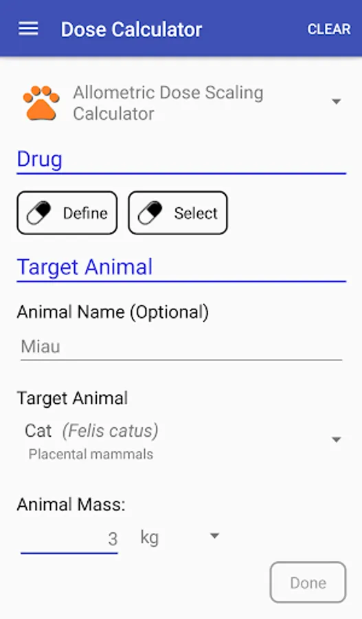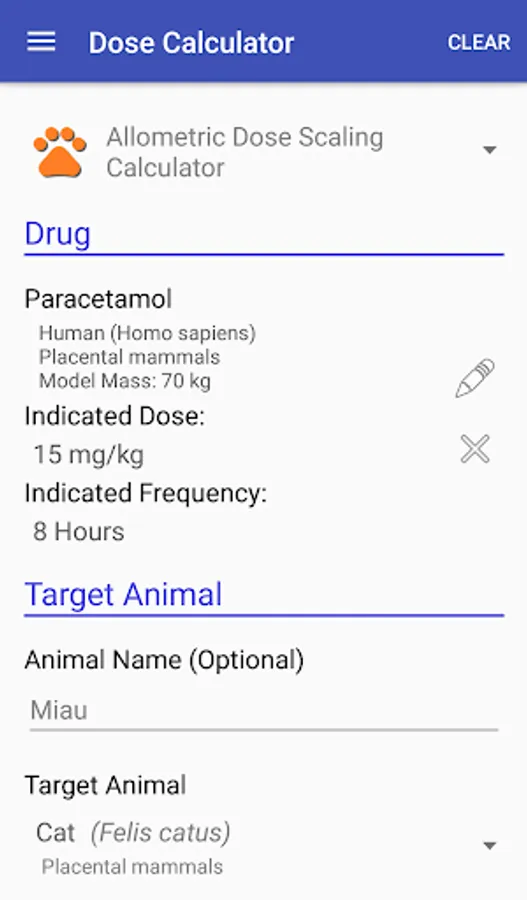 DoseVet is a tool to calculate dosage of drugs for veterinary. This tool is using an allometric dose scaling theory.