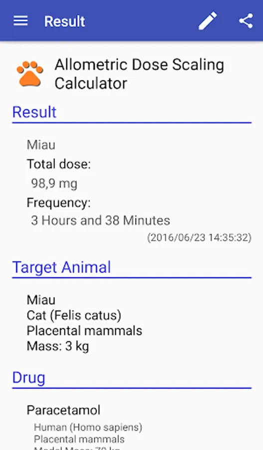- The calculated dosages are estimated from allometric dose scaling theory. DoseVet does not guarantee results / effectiveness of applications using the application;