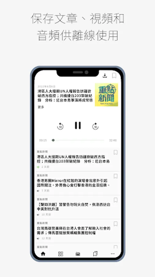 - 儲存文章、影片和音頻供離線使用