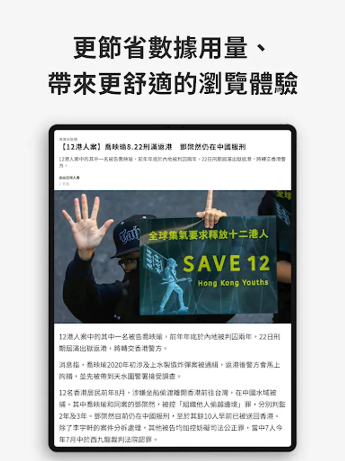 - 更節省數據用量、帶來更舒適的瀏覽體驗