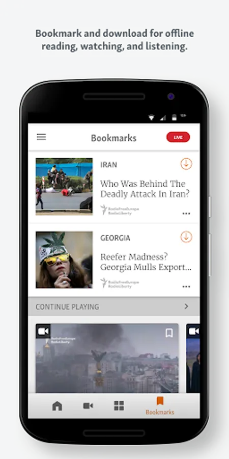 – Bookmark and download for offline reading, watching, and listening