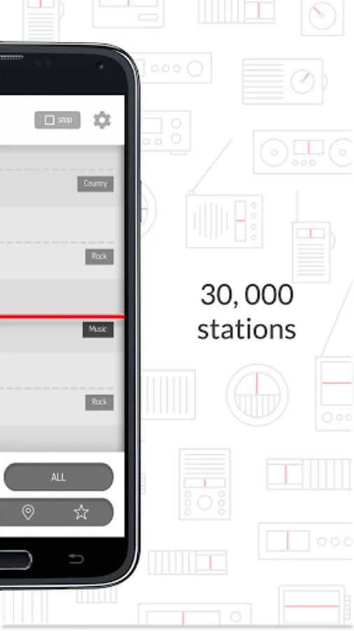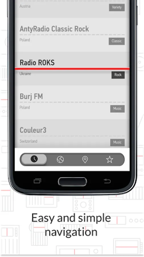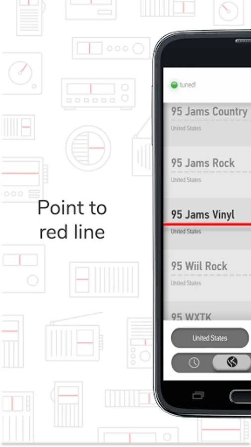 Point the station to the red line to tune it in and enjoy music or broadcasts. Exactly like in classic radio scanner.