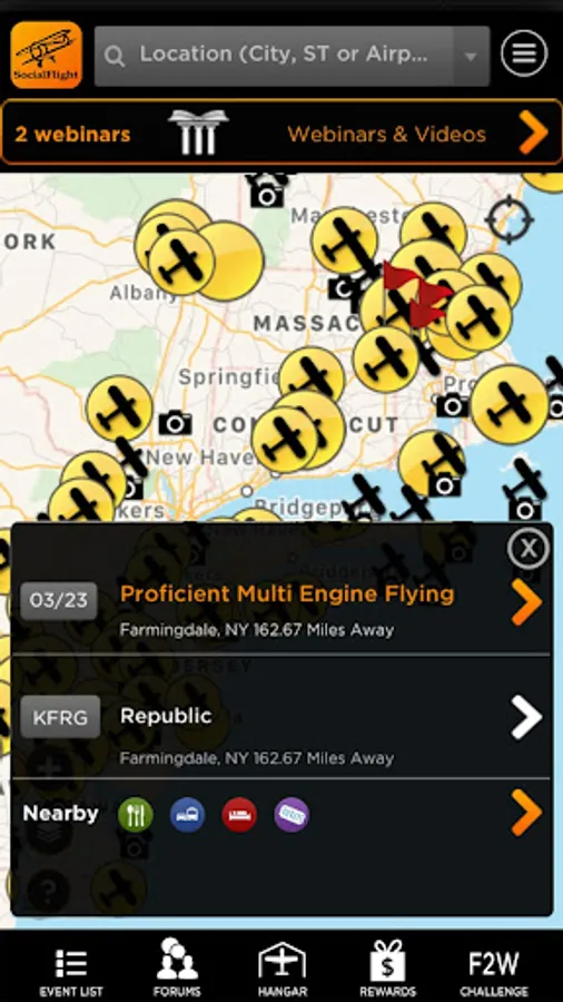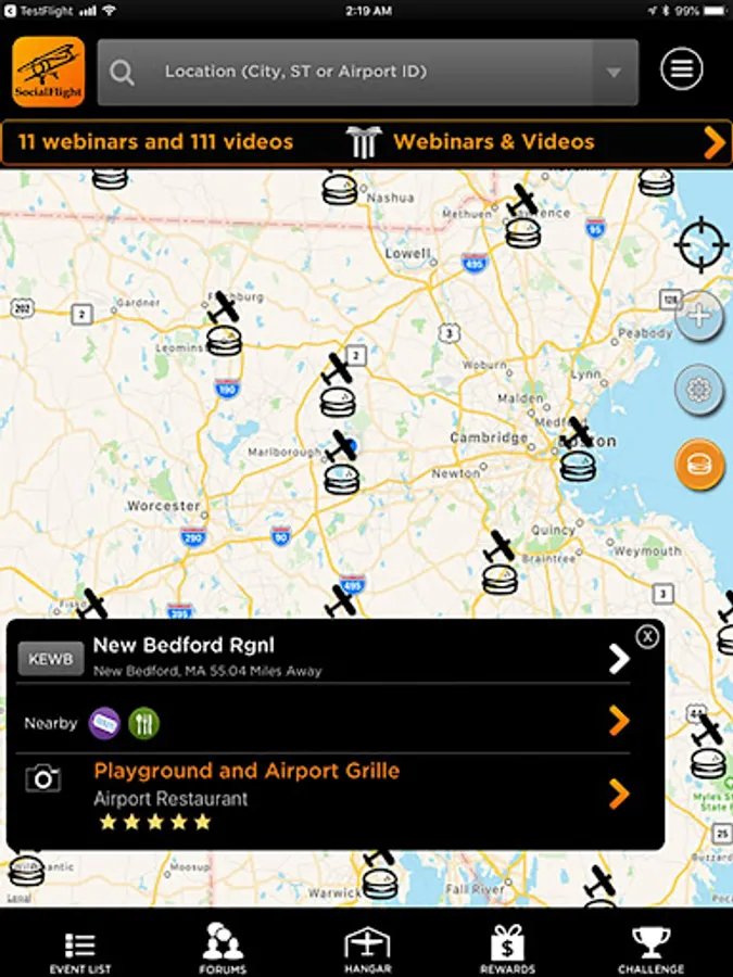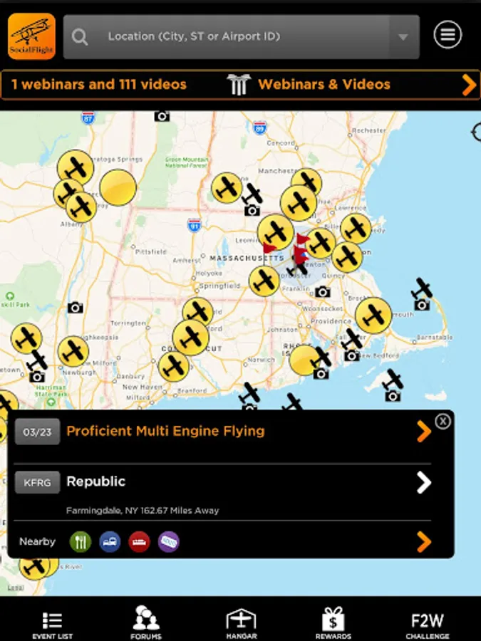Welcome to SocialFlight 6 - We've mapped out over 20,000 aviation events, Amazing Things to Do, $100 Hamburgers and more! Aircraft Fly-in's, Airshows, Pancake Breakfasts, Conventions, FAA Safety Seminars...we have it all. Destinations, Restaurants, Museums, Golf Courses, Transportation, Camping, Aviation Businesses and more...ALL within walking distance from airports!