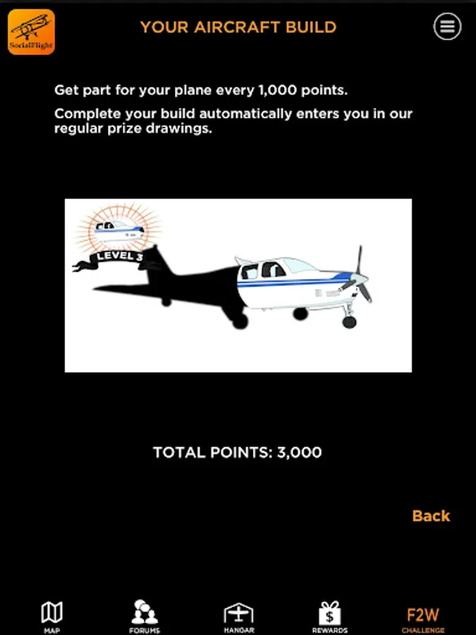 The FLY2WIN Challenge: Get points for attending events and visiting new airports & destinations. You automatically get notifications as your travel so you can Check In and gather points to compete. Build your own virtual aircraft, compete on the monthly leader board and participate in our frequent Grand Prize drawings to win great prizes such as avionics, headsets and more.