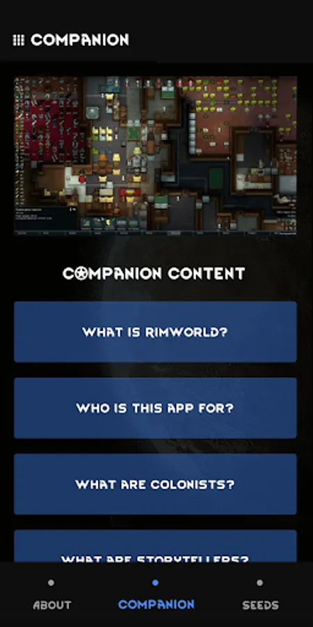 Build a great civilization in RimWorld with Pocket Companion! A complete and comprehensive RimWorld companion is now in your pocket. From begginer to pro is easy and straightforward. You can choose a convenient seed for the world of your future civilization In the Seeds category