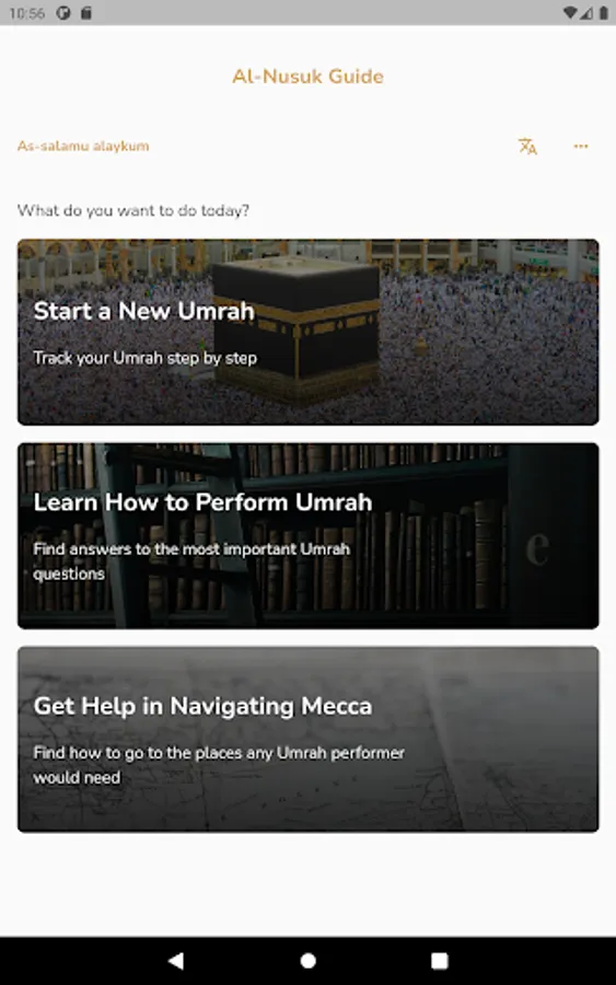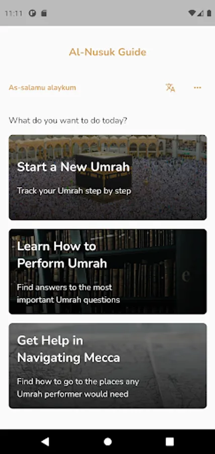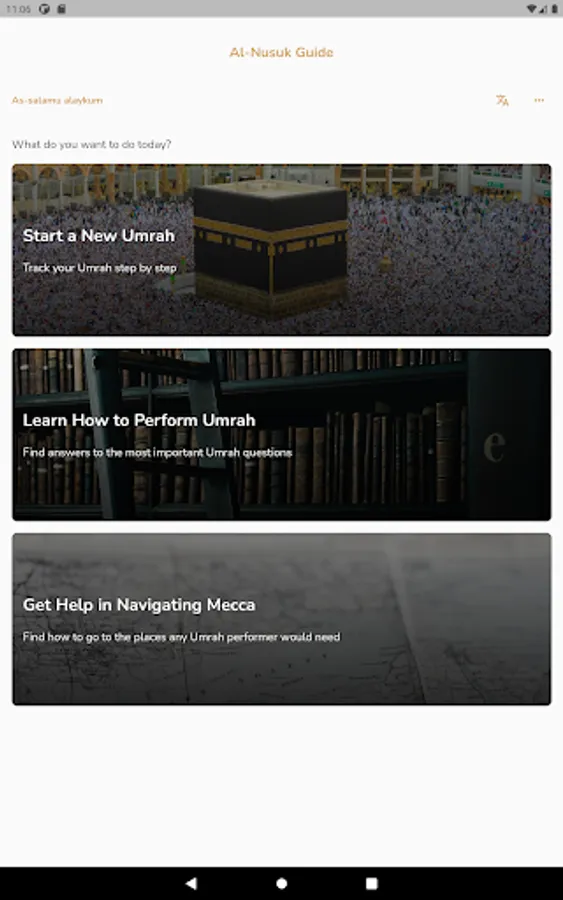 Al-Nusuk Guide facilitates pilgrims in performing umrah. It features three functions: Umrah Tracker to guide you in performing Umrah, Umrah Handbook to answer your umrah-related questions, and Umrah Navigator to help you navigate Mecca and Al-Haram.