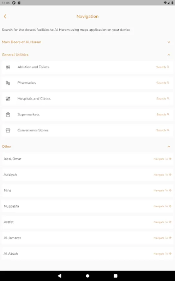 Umrah Navigator helps you in navigating Mecca and using general utilities such as toilets and supermarkets.