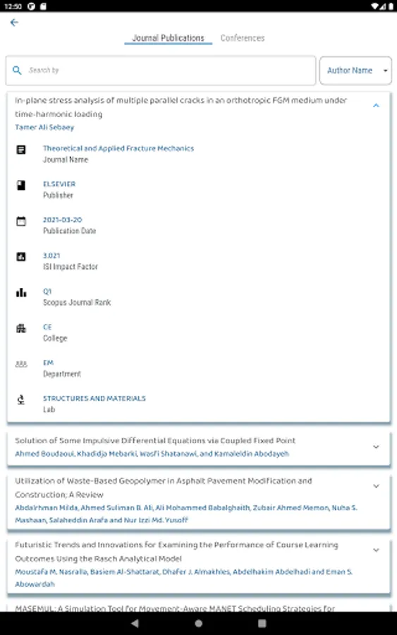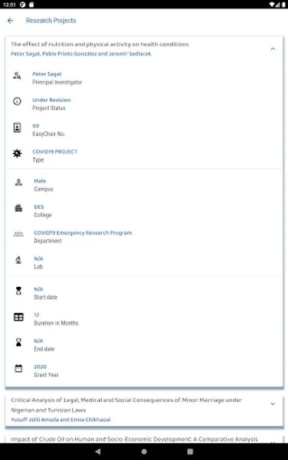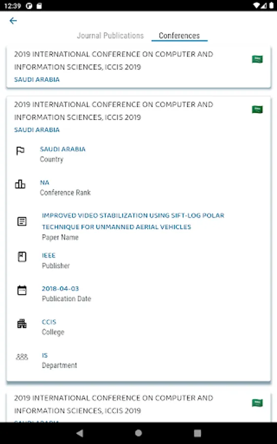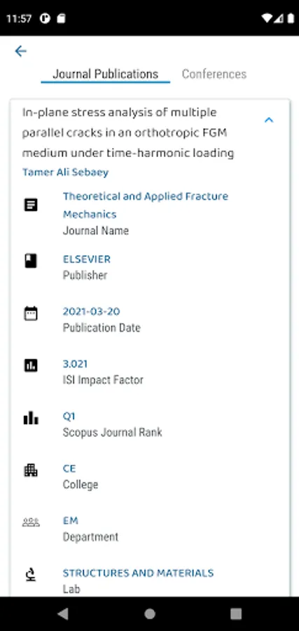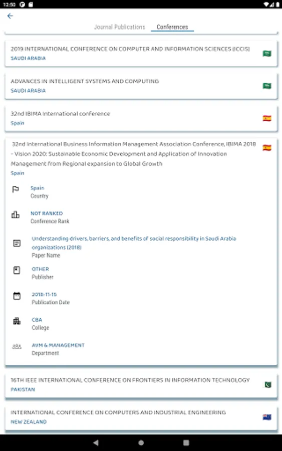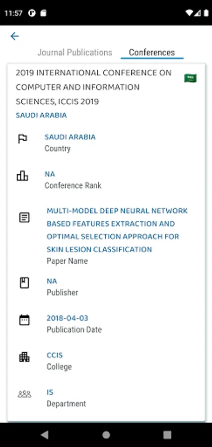 RIC Express also allow users to view publications, conferences, analytics, and research projects of all researchers without signing in.