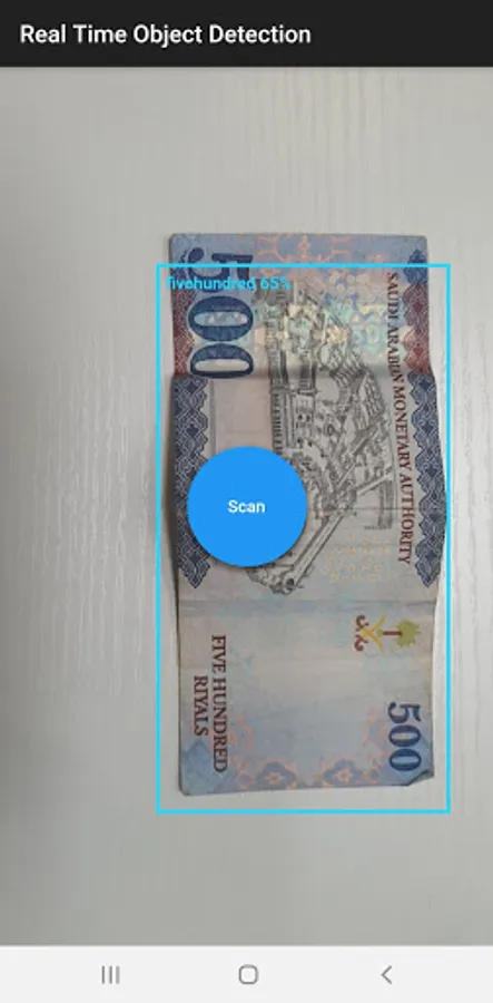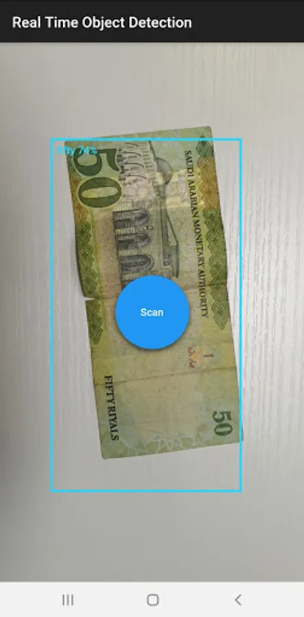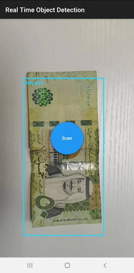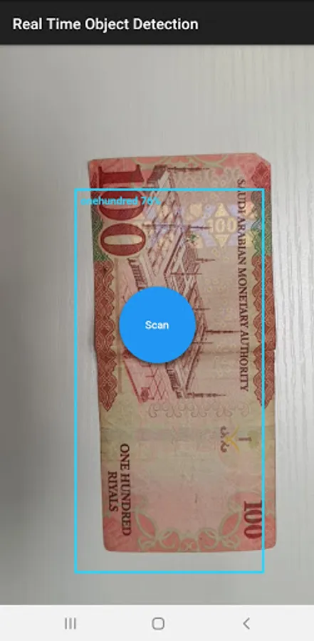 Saudi Currency Reader uses deep learning technologies to detect currencies using the device's camera and reads its value by pressing the button in the middle of the screen. Saudi Currency Reader is developed to help visually impaired people recognize Saudi Riyal notes.
