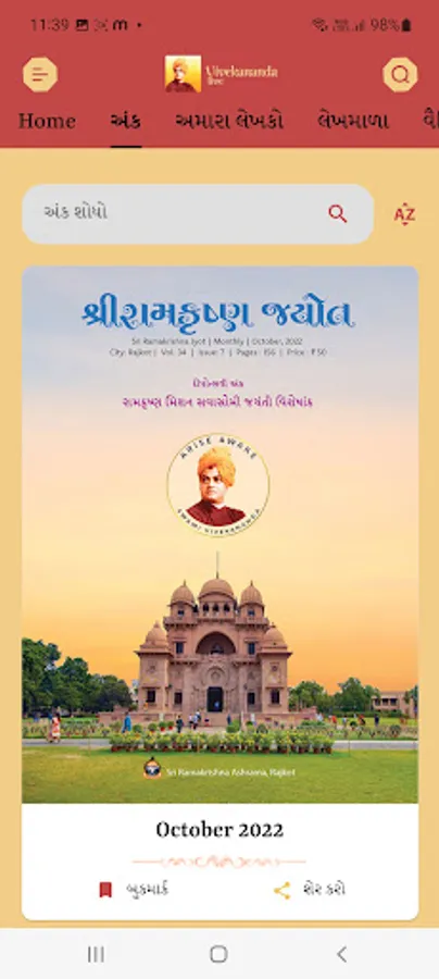 Sri Ramakrishna Jyot magazine and Ramakrishna Vedanta Literature in Gujarati. Read Online for free and also purchase from our online bookstore. Official app developed by Sri Ramakrishna Ashrama Rajkot—a branch center of Ramakrishna Mission, Belur Math. This app contatins : (1) More than 7000 articles from more than 380 issues of our gujarati magazine Sri Ramakrishna Jyot. Readers can read all these articles for free or search through them for any relevant information. (2) Some of the very valuable ebooks on the teaching of Sri Ramakrishna, Swami Vivekananda, Sri Ma Sarada Devi, and Indian spritual heritage. (3) Inspring quotations of Swami Vivekananda on topics like yoga, motivation for students and teachers, personality development, meditation, patriotism, peace of mind, etc. (4) Online book store to purchase our books, subscribe Sri Ramakrishna Jyot, and photographs of Sri Ramakrishna, Swami Vivekananda, and Sri Ma Sarada Devi.