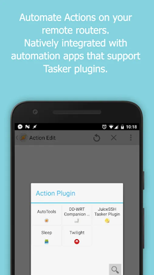 To use it, open Tasker (or the appropriate automation app that supports Tasker plugins), and DD-WRT Companion will appear as an Action Plugin.