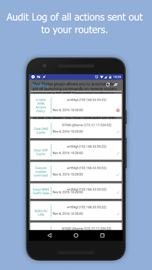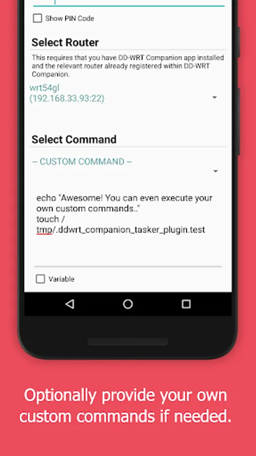 This is a Tasker Plugin that allows you to automate the act of launching commands on remote routers registered in DD-WRT Companion app (either Lite or Premium versions).