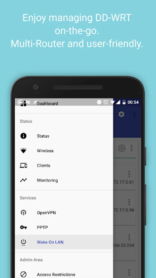 This app lets you monitor and manage your DD-WRT routers on the go. Anytime. Anywhere.
