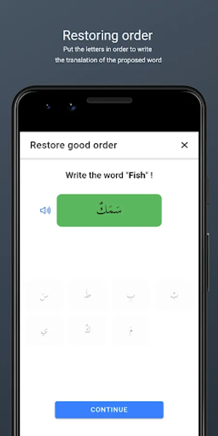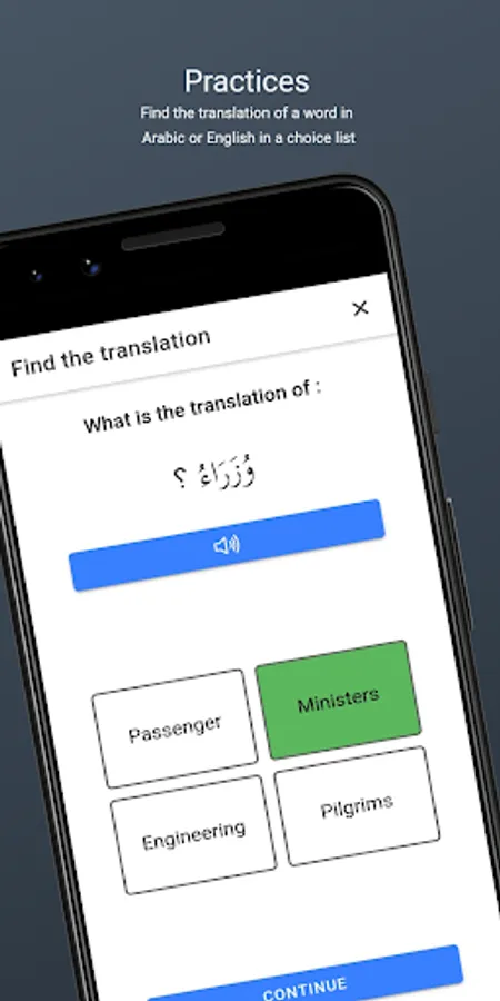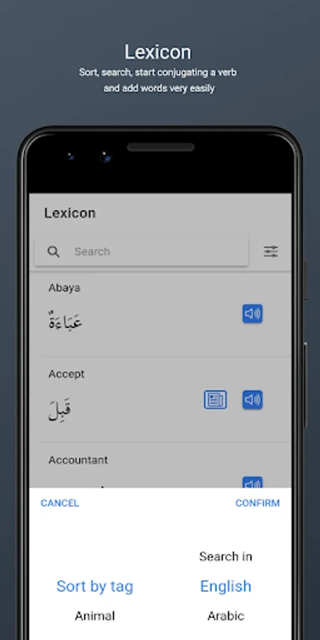 - Use of the lexicon available (+1 700 words) to learn and revise in Arabic.