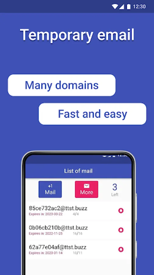 With the our for Temporary Mail app, you can generate a temporary mail address and receive emails immediately.