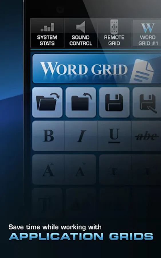 4. Two Custom Tabs – Power-Grid™ not only connects your smartphone to your PC, it also features a powerful editor that lets you build your own Grids & Controls to load into your tab bar – for the ultimate in customization.