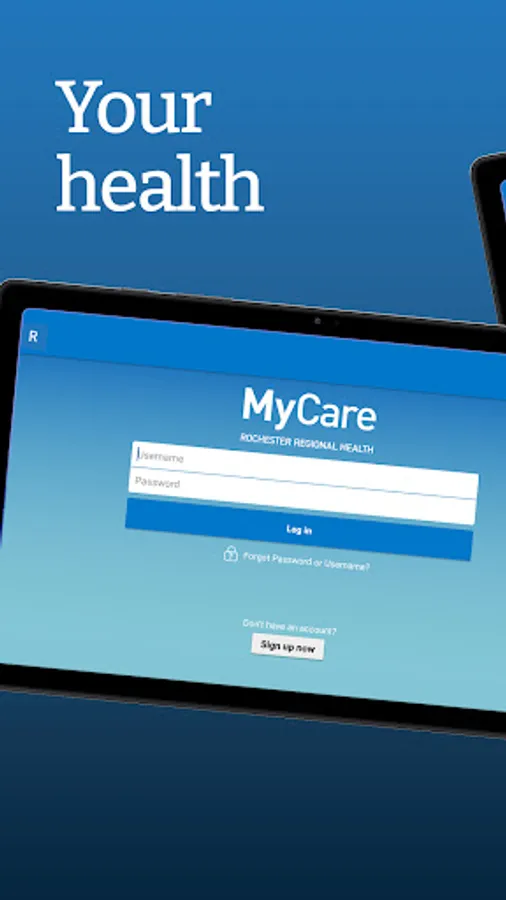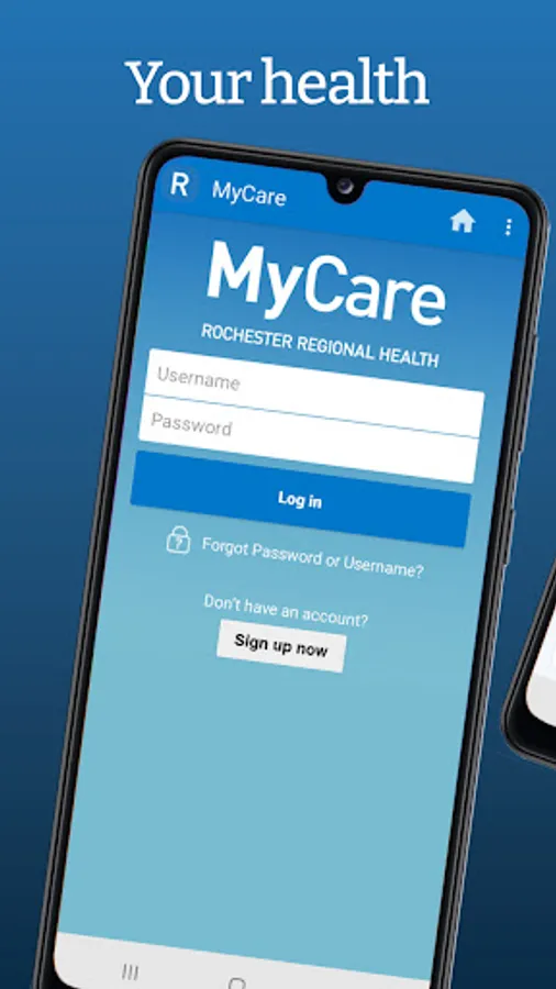 If you do not have a Rochester Regional Health MyCare account, create one by clicking Sign Up Now in the app or by visiting https://mycare.rochesterregional.org