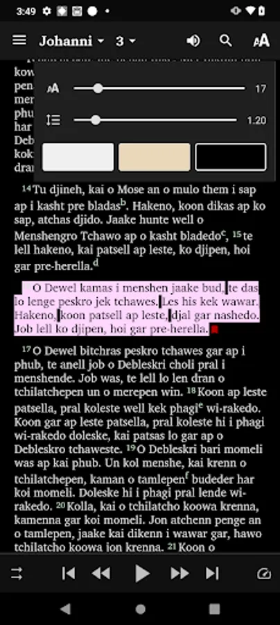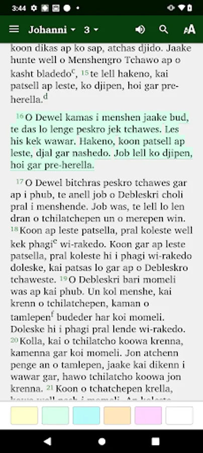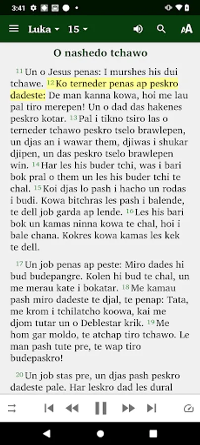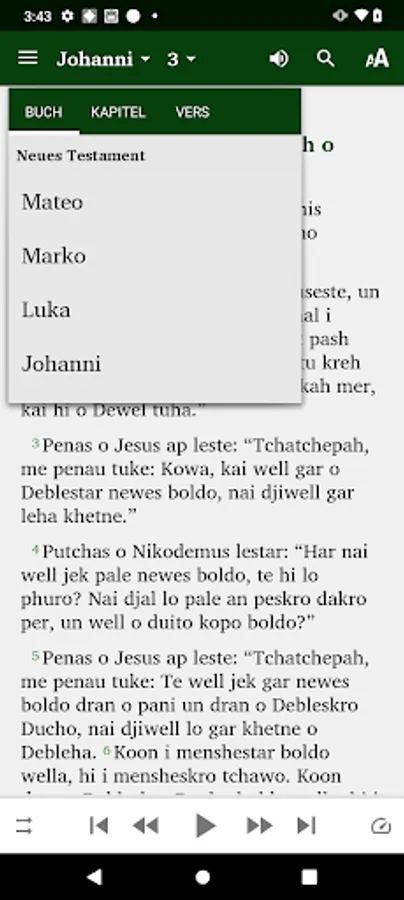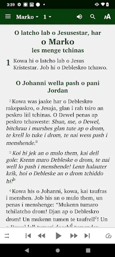 “Gospel” means “good news.” The four gospels tell us about Jesus' life on this earth and his teachings. You can read the Gospels from the Romani Bible and at the same time hear them read by a native speaker.