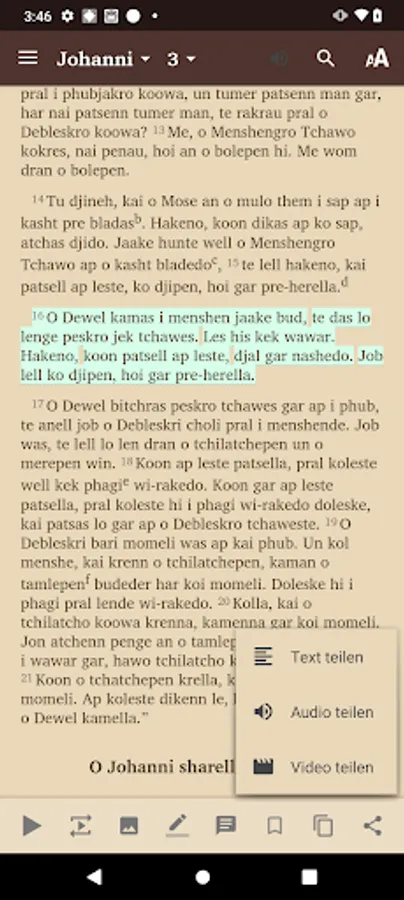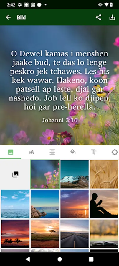 The app also includes a verse image editor. Combine one or more verses with a photo and share the image with others. You can also save and share short audio or video clips.
