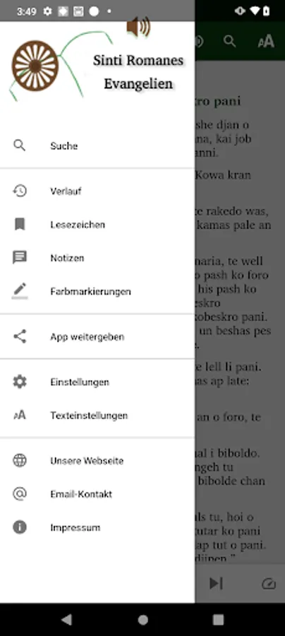 You can place bookmarks, write notes and color Bible passages yourself. You can easily return to previously viewed Bible passages as you go.