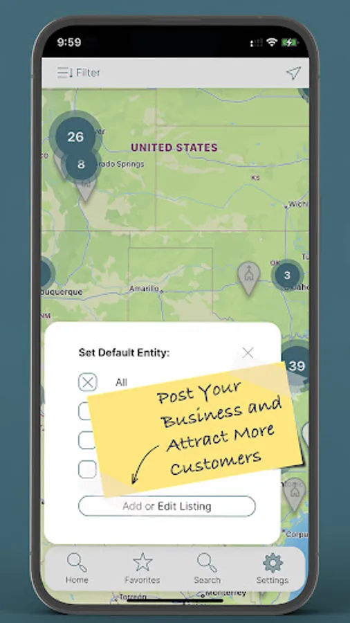 • Post as much information as you would like about your location or listing, including descriptions, photos, contact information, website or social media links, and other details to help an app user find and choose your company;