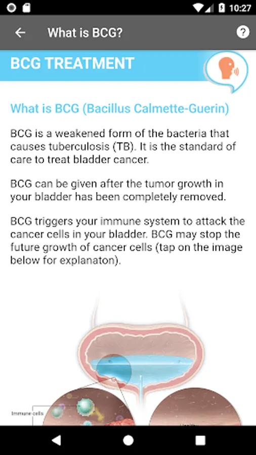 BCG (i.e., Bacillus Calmette-Gue´rin) is the recommended course of treatment for intermediate and high-risk bladder cancer patients, however, this treatment is associated with high toxicity, and compliance with treatment and follow-up recommendations may vary depending on several patient-specific factors. Patient education on the subject may prevent toxicity and adverse events. Composed, educated patients are better able to participate in erudite negotiations about their healthcare.