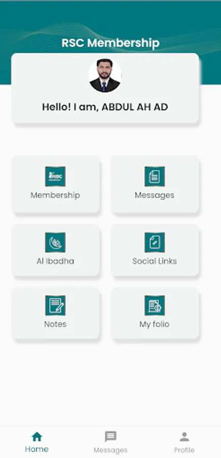 RSC membership application is for Risala Study Circle members viewing their membership card. It features a simple note pad for storing text notes and a push notification message page.
