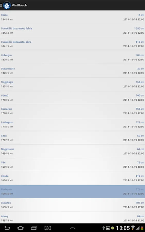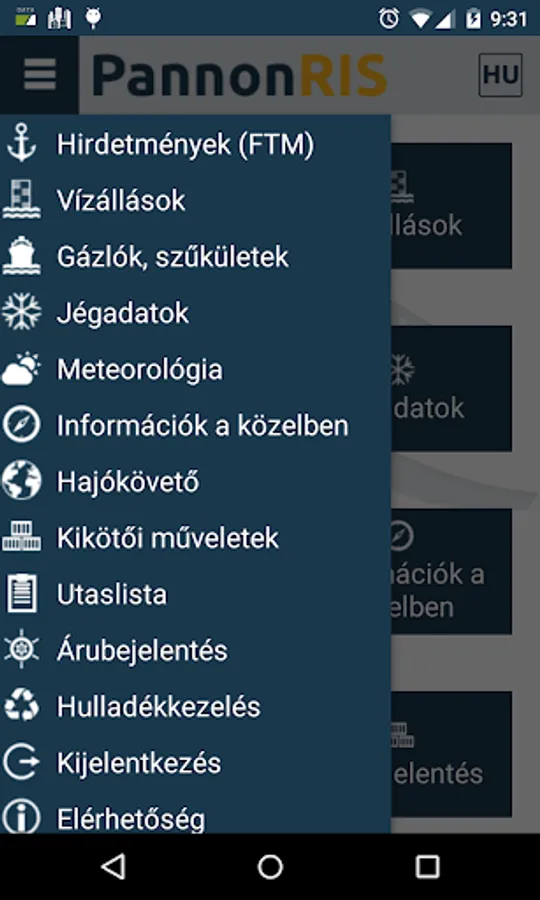 The PannonRIS mobile application offers the following continuously updated information for the stakeholders of inland navigation on the Hungarian section of the River Danube free of charge: