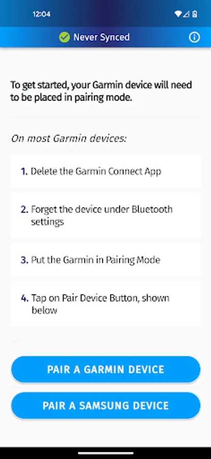 This app will be used to gather data from Garmin watches locally via a Garmin licensed SDK without the need to go through Garmin's cloud