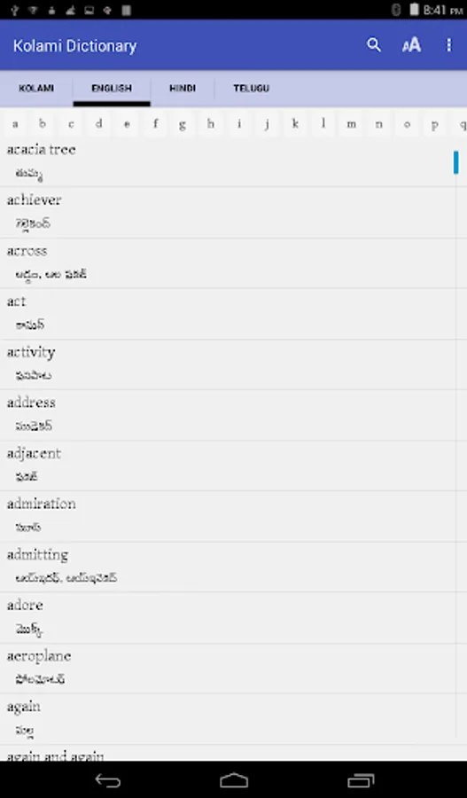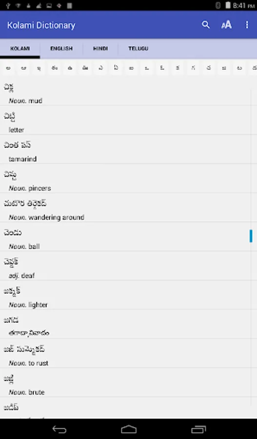 It is a dictionary BY the people and FOR the people. It is not yet perfect, and should be considered as a community-approved draft with work still in progress. The maintainers of the Kolami Dictionary database welcome all feedback - which can be immediately incorporated into subsequent electronic editions. Our hope and dream is that this App will be very useful to the Kolams of Adilabad District - as they seek to preserve and develop their unique language and culture.