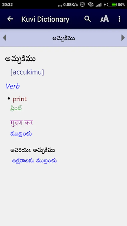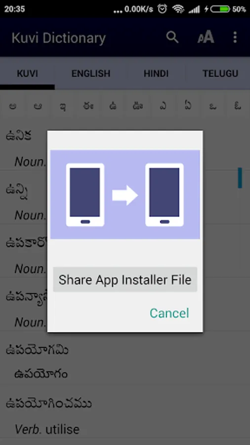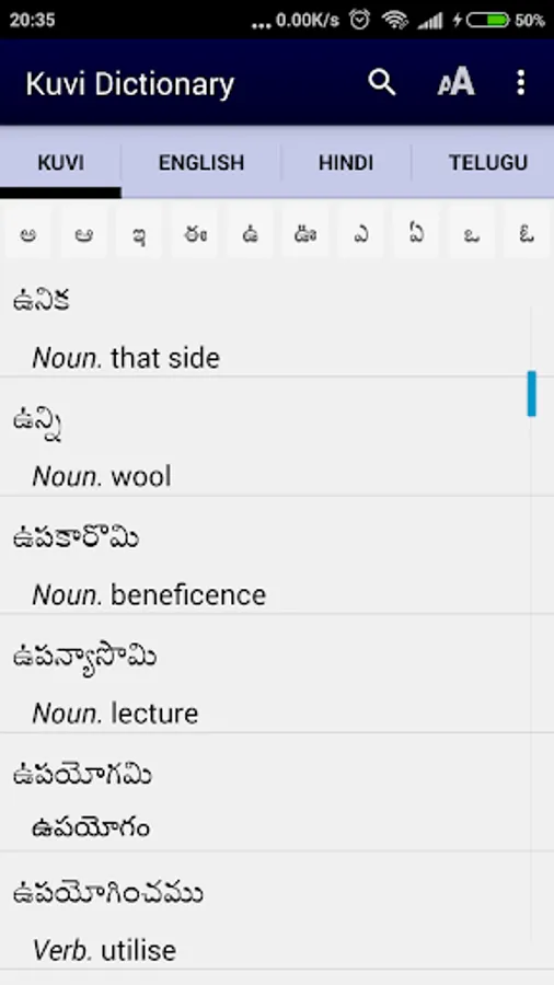 It is a dictionary BY the people and FOR the people. It is not yet perfect, and should be considered as a community-approved draft with work still in progress. The maintainers of the Kuvi Dictionary database welcome all feedback - which can be immediately incorporated into subsequent electronic editions. Our hope and dream is that this App will be very useful to the Kuvi community - as they seek to preserve and develop their unique language and culture.