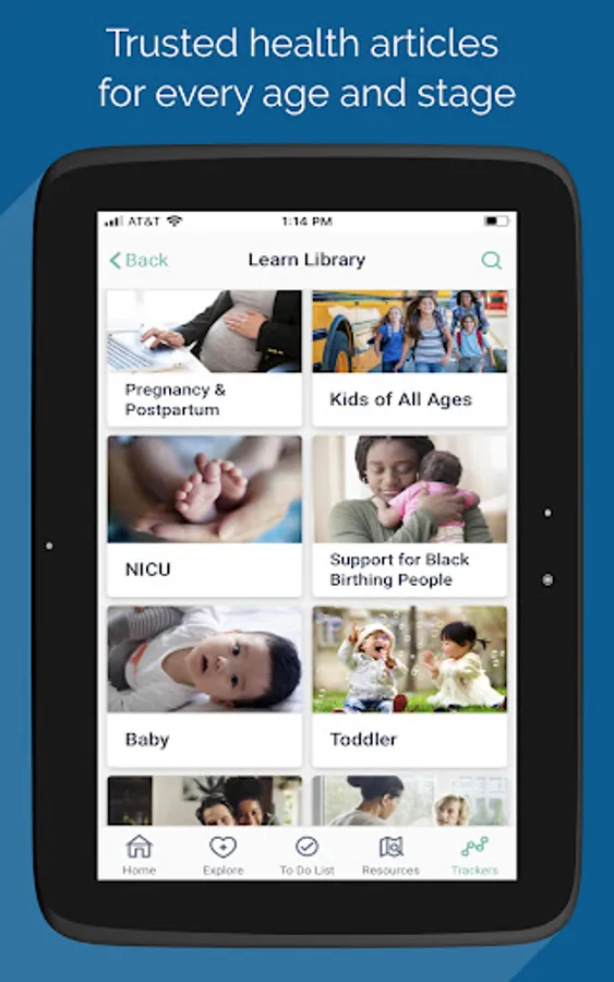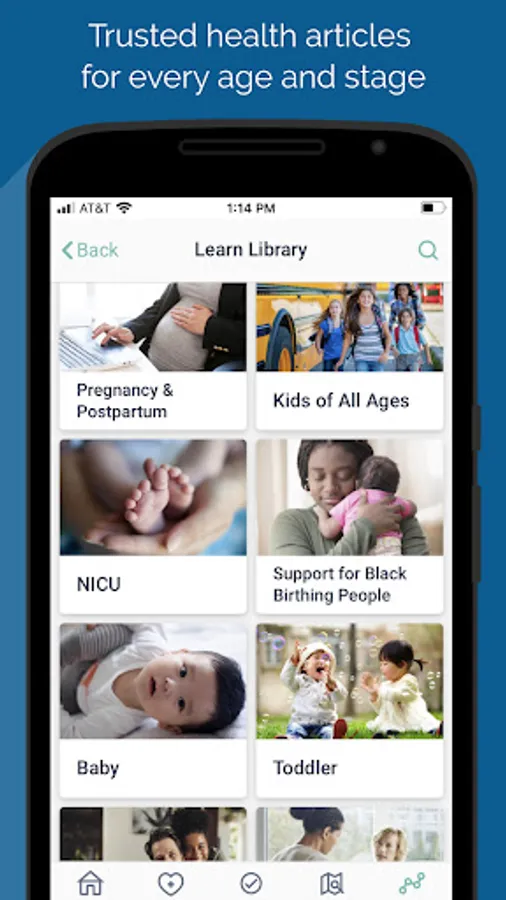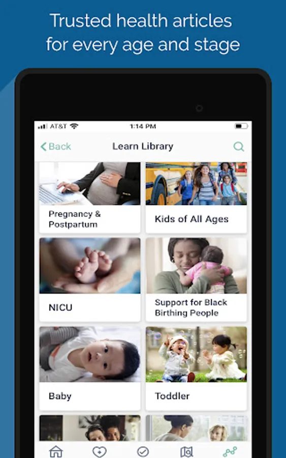 • Evidence-based articles and videos on prenatal and postpartum care, milestones, labor and birth, breastfeeding, newborn care and adult wellness