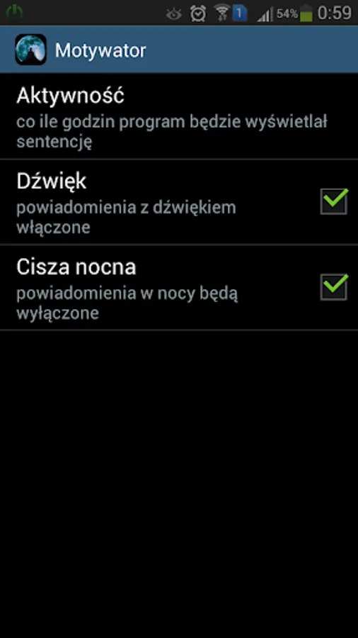 A much better option, however, is to make the show at a certain time motivating you to the next sentence. In the settings you can specify how often the program to display a sentence: every hour, two, twice a day, or once a day. When the time comes for the notification bar will show the information that has come to you a new motivational maxim.