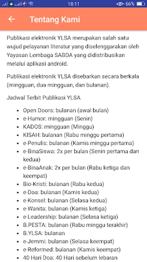 YLSA electronic publications is one manifestation of literature ministries organized by the Foundation NET via an Android application.