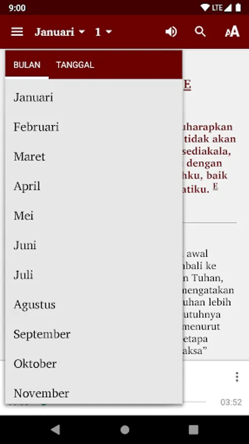 • Menu / Navigation : Drop down menu for quick access to Month / Day.