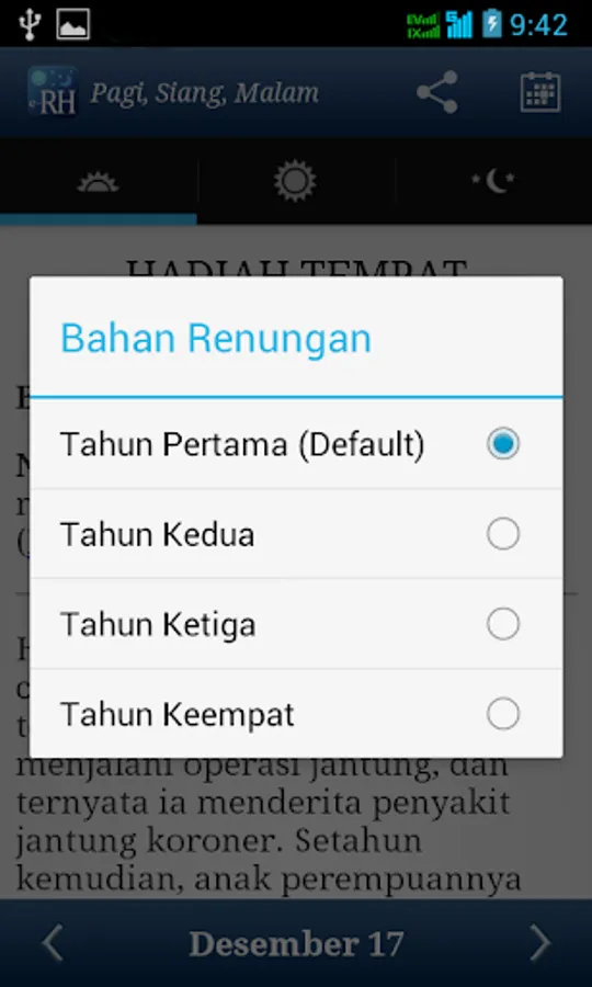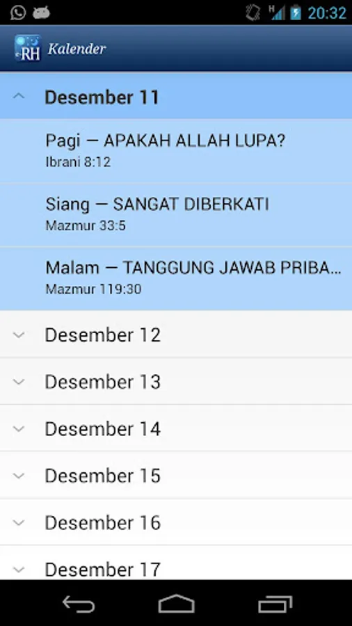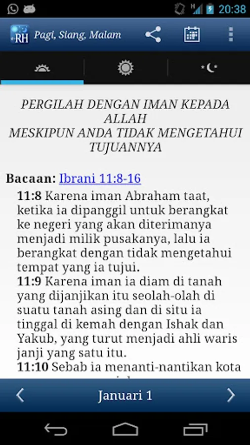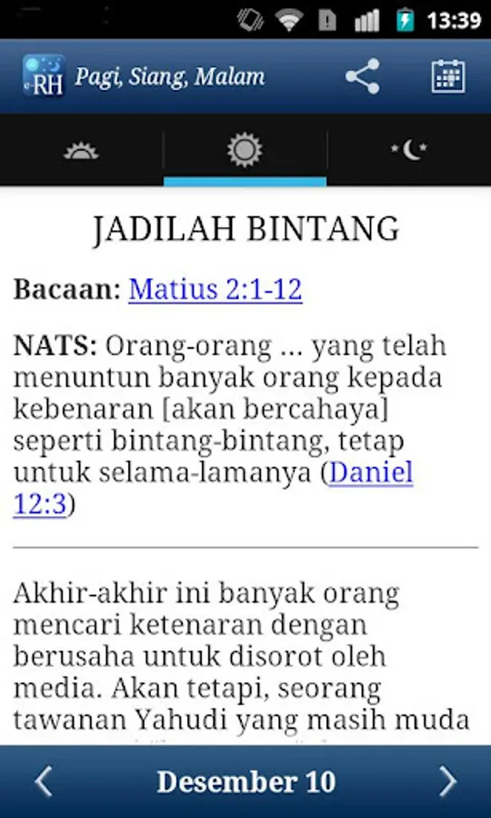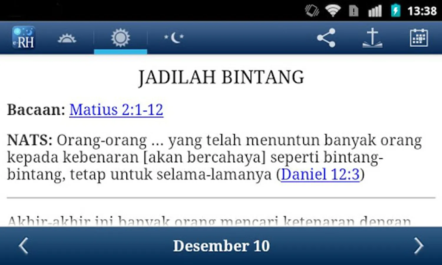 Renungan e-RH PSM is a three-in-one 'daily devotional' Bible App, with three different readings for each part of each day -- Morning, Afternoon, and Evening -- so that every day you are filled with the Word of God and His righteousness!
