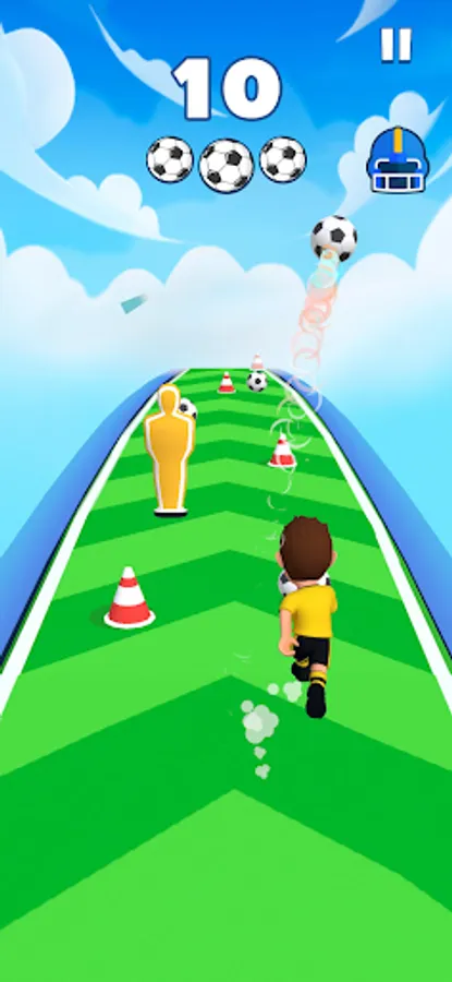 Yo'lingizda uchraydigan barcha futbol to'plarini teping va yo'lingizni to'sib qo'ygan to'siqlar va raqiblarni chetlab o'ting!