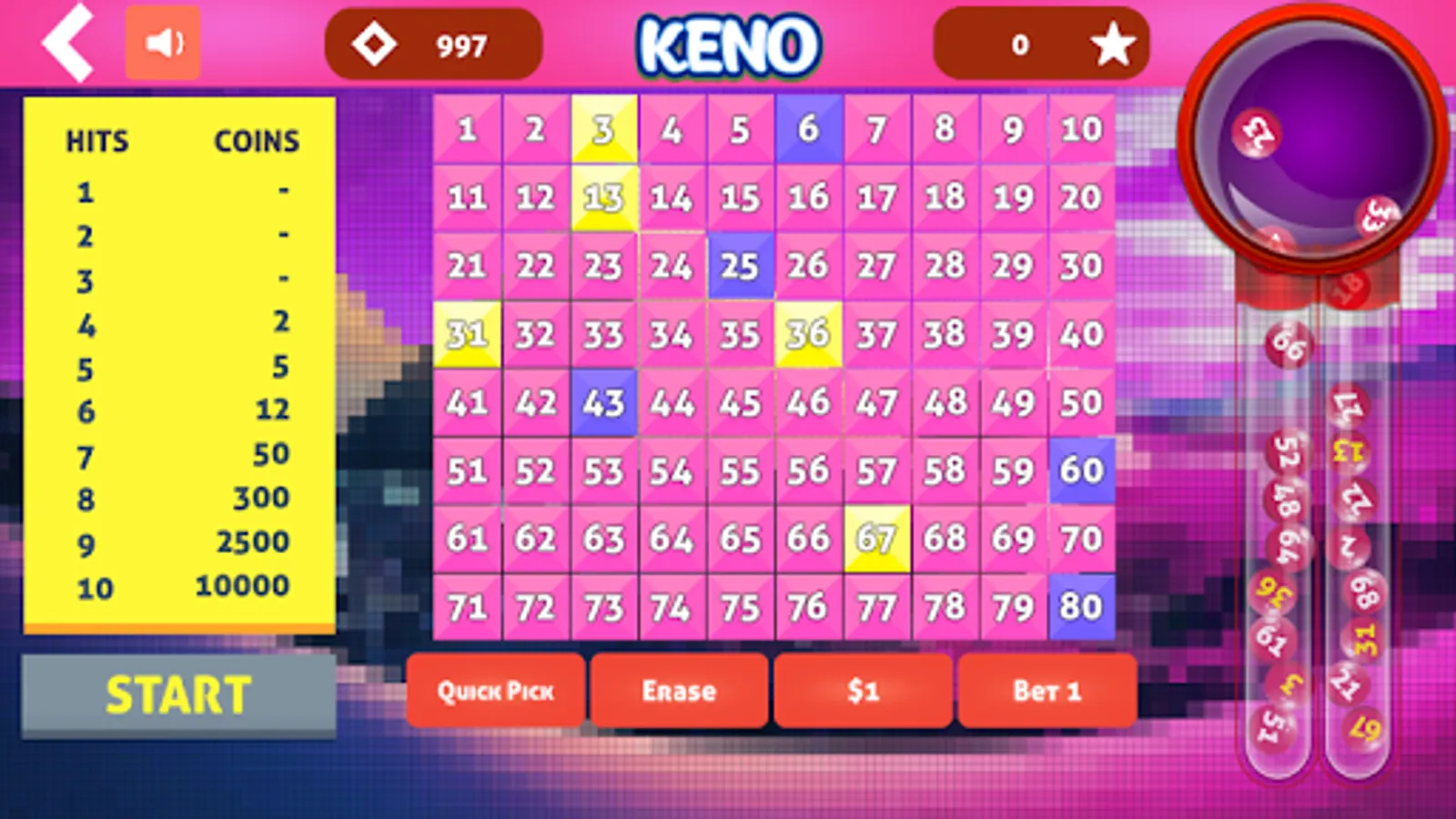 A beautiful version of Keno. The game is laid out just like the game at the casino. You just cant beat a classic game like Keno. So much fun! So much love. Now you can play the classic game of Keno at home, or on the go. Keno Cleopatra is one of the most exciting and beloved variations of the popular casino game of Keno, and it's now available across all Android platforms!