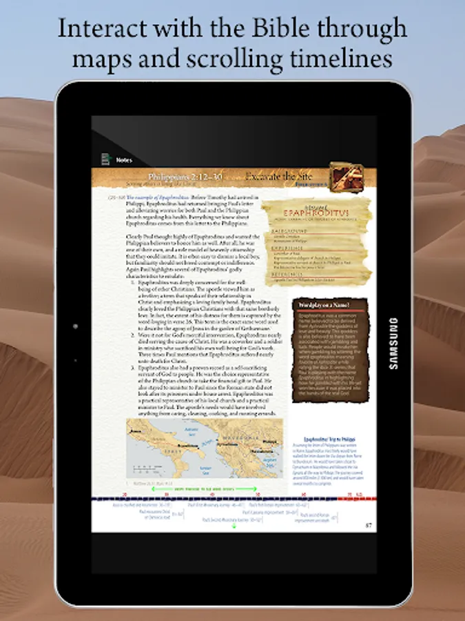 Experience the ultimate way to construct and connect the events of Scripture. Finally, understand His-story and your place in it. This app contains several Bible studies that immerse you in the ancient world and our premium interactive resource which brings the setting of Scripture to life.