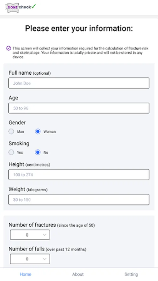 BONEcheck has 3 modules: input data, risk estimates, and risk context.