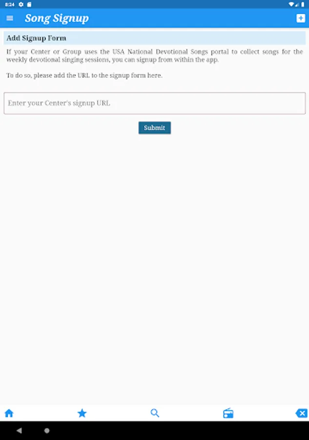 If your center uses online signup for weekly devotional singing sessions, sign up for songs from within the app.