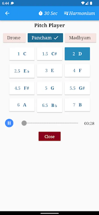 Integrated Pitch Player for singers to set pitch before offering a song.