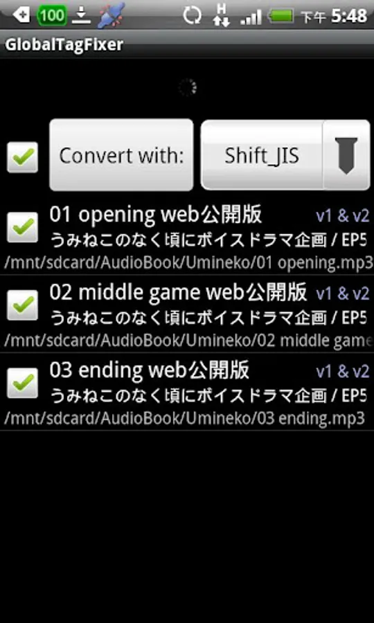 You can select the encoding and songs, preview them automatically, then convert all in one tap.