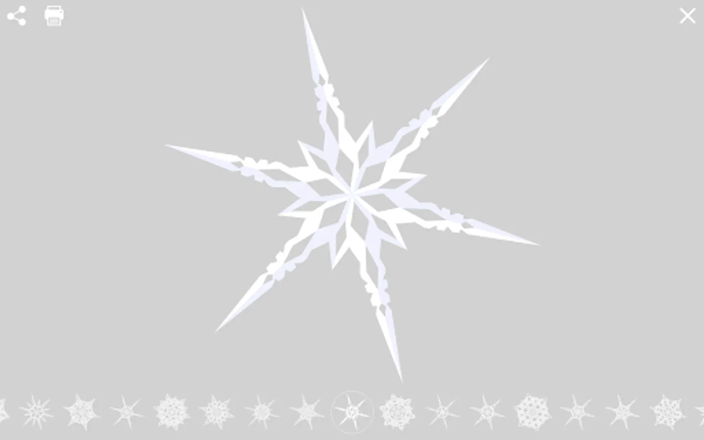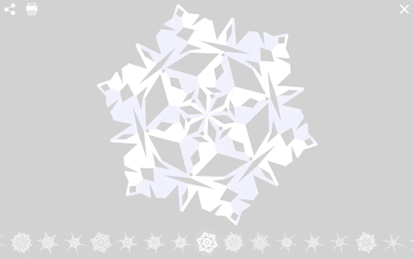 Swipe through the screen or tap the infinity feed of unique snowflakes created by artificial intelligence! Share them with your friends! Print and cut them in real life! No snowflake will ever be like another one!