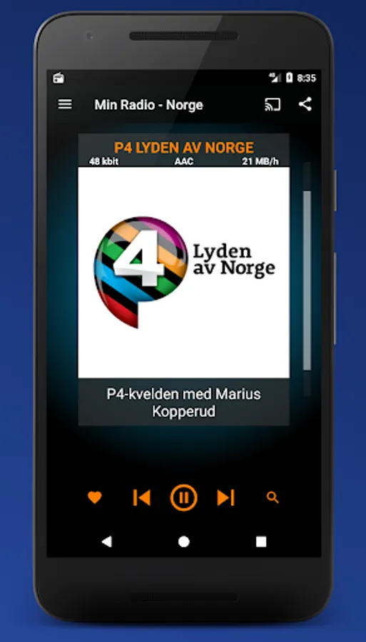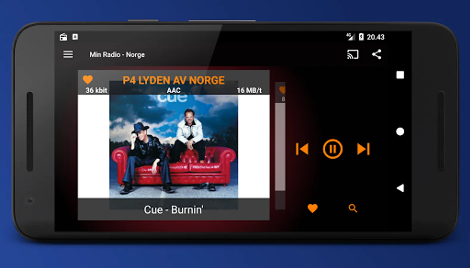 This is the Radio App you´ve been looking for. Full Bluetooth integration* with your car. Switch stations from the steering wheel - My Radio Norway is the best choice. (* requires Bluetooth Audio and AVRCP support).