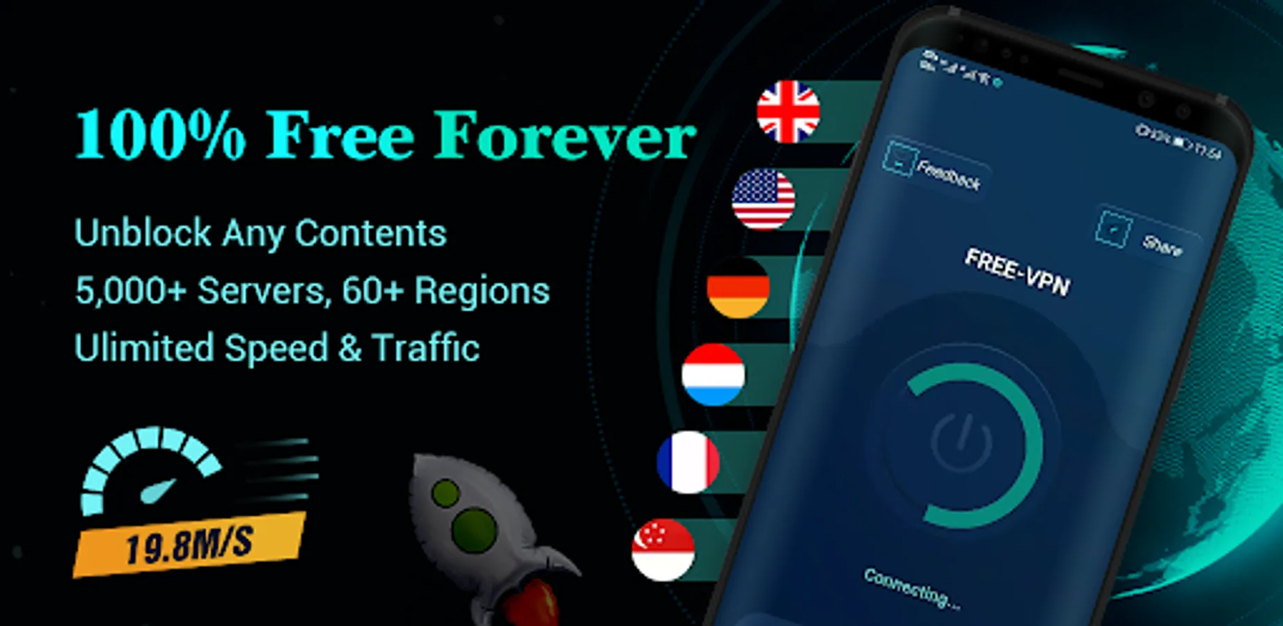 Star VPN is fast! It brings a high-speed and encrypted VPN connection to your smartphone.You can watch streaming videos/content without buffering.Star VPN can reduce ping and accelerate games after connection.