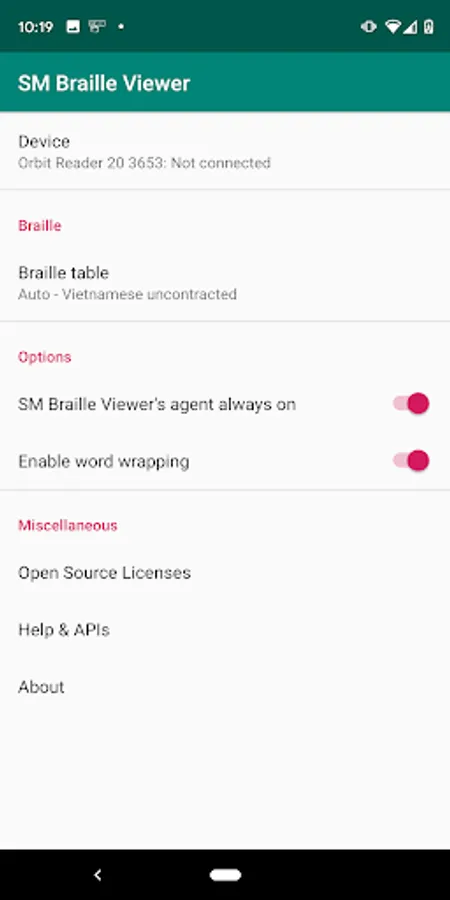 SM Braille Viewer is a free and fully accessible Android app for blind and visually impaired people to read text on braille display, developed by Sao Mai Center for the Blind.