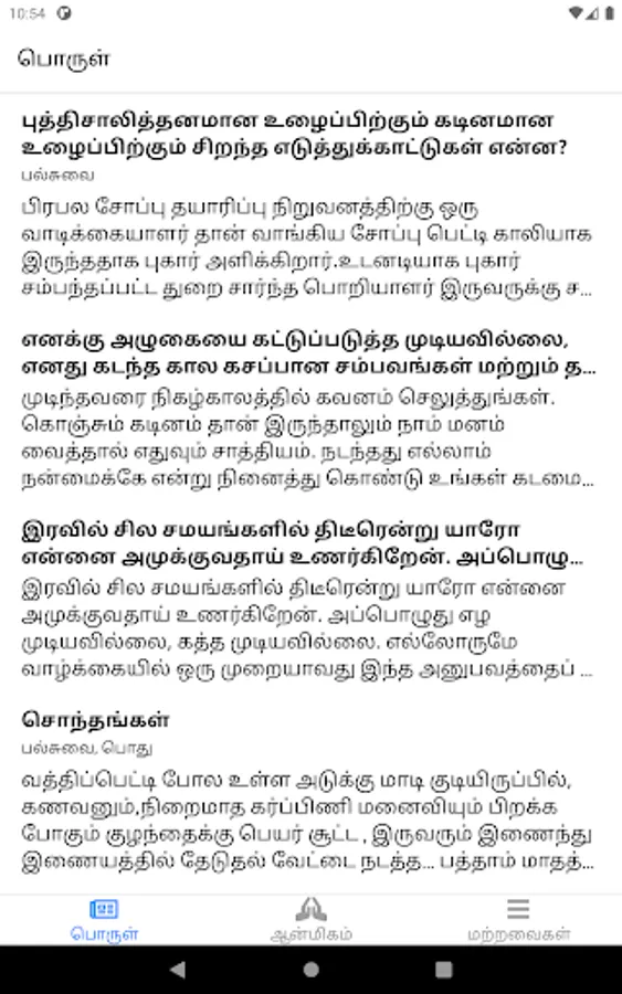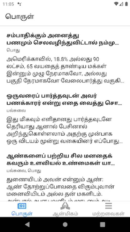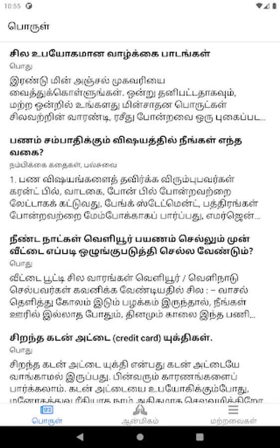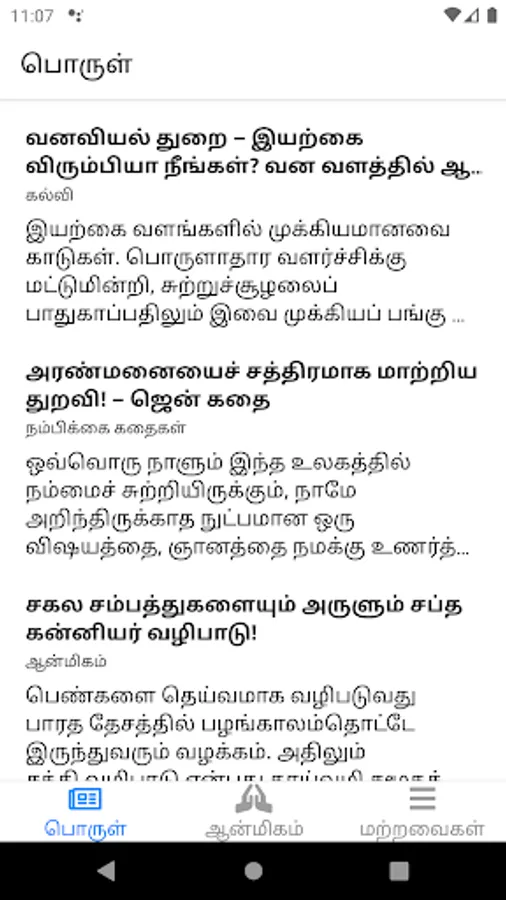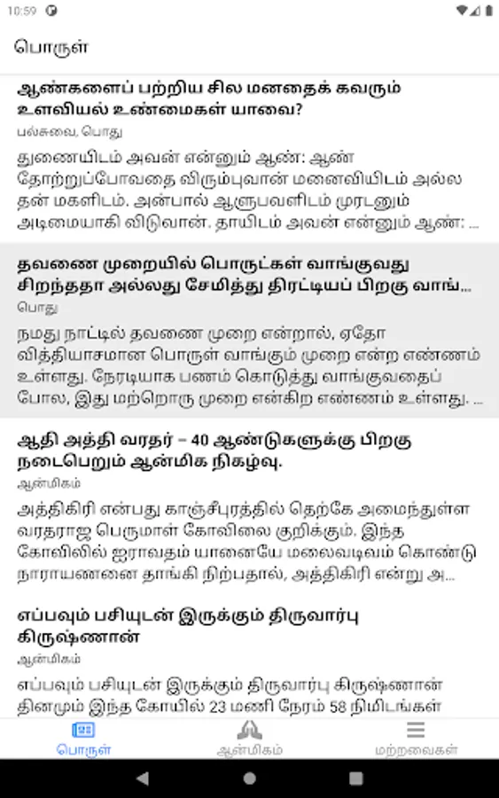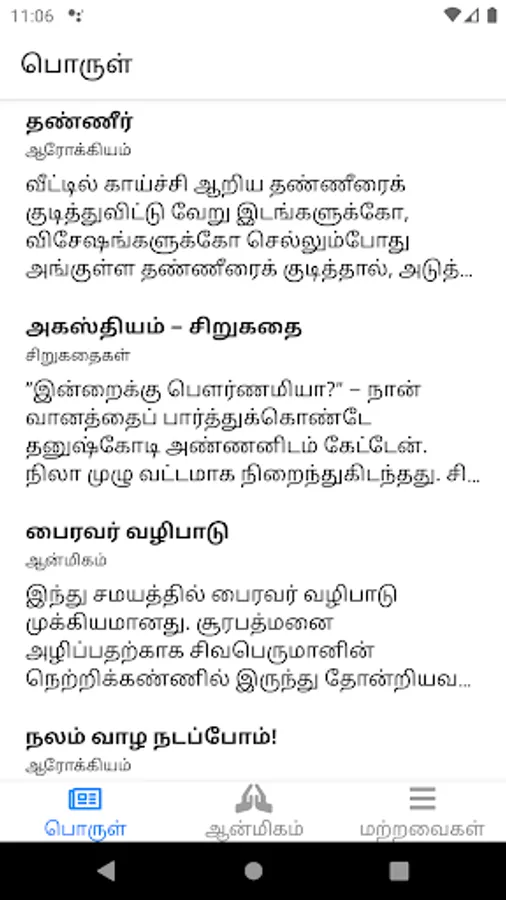 ஆன்மிகம், ஆலயம், ஆரோக்கியம், கல்வி, சிறுகதைகள் என பல்வேறு தலைப்புகளில் பயனுள்ள தமிழ் கட்டுரைகள்.