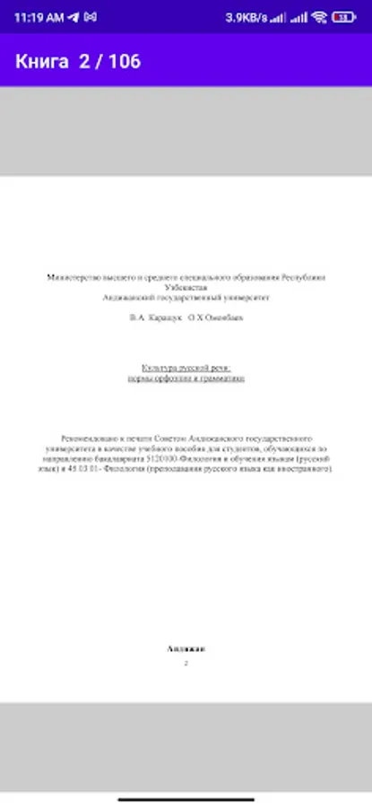 This application is an electronic version of the manual "Culture of Russian speech: orthoepy and grammar norms" by V.A. Karashchuk and O.Kh. Omonbaev, which can be used by everyone.